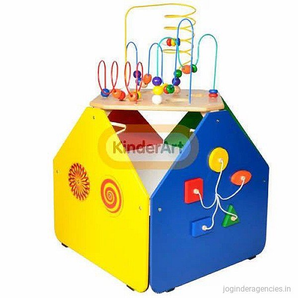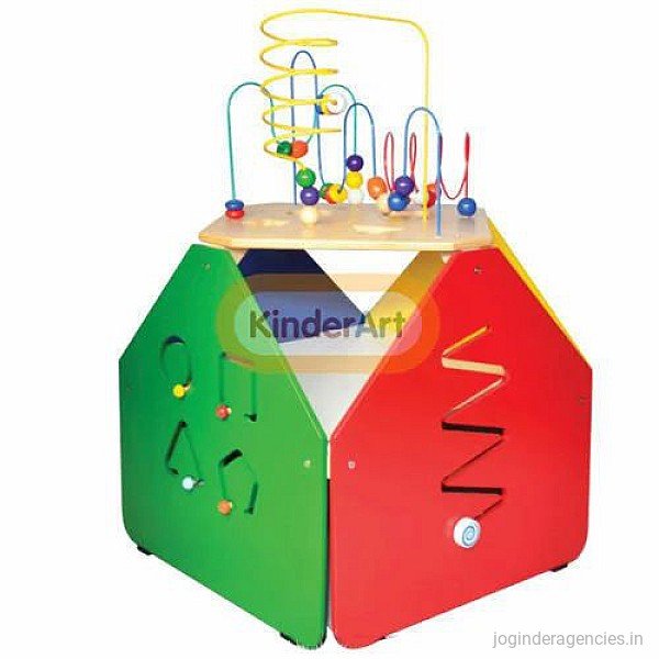 The large bead maze cube offer five sides of eye-hand coordination activities, top side is bead maze, four vertical sides are track path, roller track, rotating illusions, shapes sorter. It provides with ample storage shelf to store toys. Adult assembly required.Additional Information:
